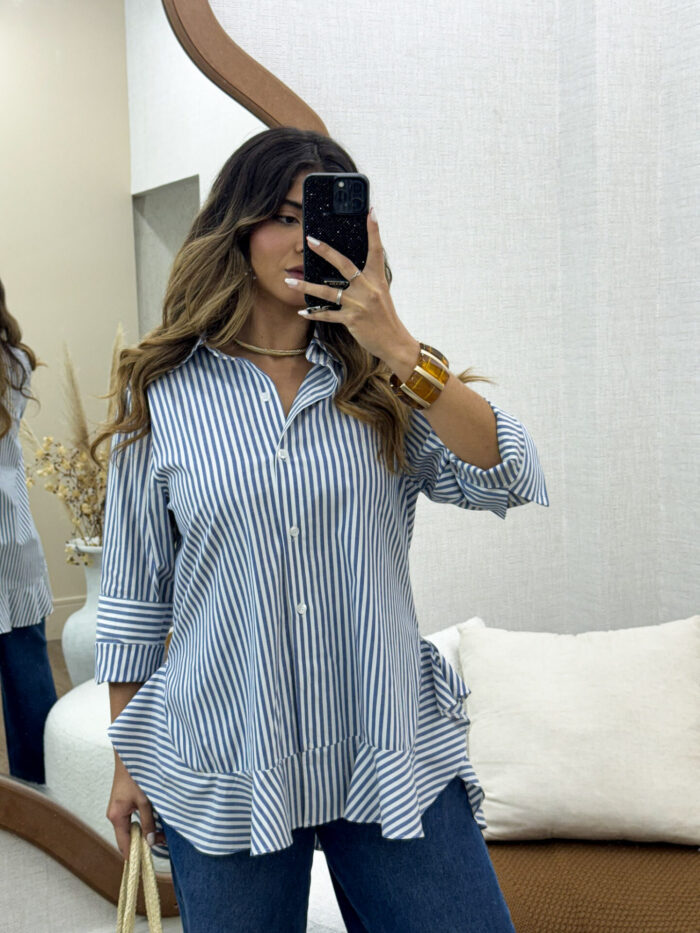 Confeccionada em tricoline, um tecido leve e respirável, essa camisa proporciona conforto ao longo do dia e um caimento estruturado que realça a silhueta com elegância. Versátil e sofisticada, transita facilmente entre produções formais e casuais, garantindo estilo e praticidade em qualquer ocasião. Um item atemporal para mulheres que valorizam qualidade, bom corte e um visual sempre refinado.