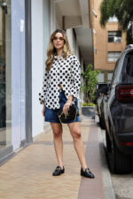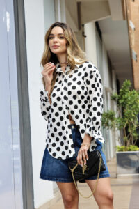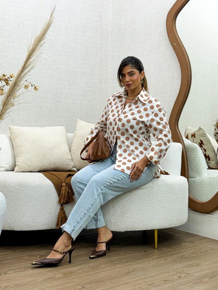 A camisa poá combina sofisticação e modernidade em uma peça leve e confortável. O tecido macio valoriza o caimento, enquanto a estampa clássica de bolinhas realça o visual atemporal. Os botões nas costas trazem um detalhe exclusivo que reforça o charme da modelagem. Versátil e elegante, a peça se adapta a diferentes estilos e transmite confiança e sofisticação em qualquer ocasião.