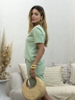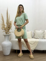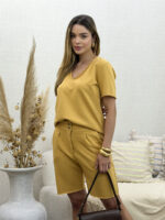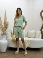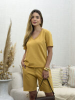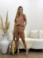 O conjunto de blusa decote V e bermuda em moletinho é a união perfeita entre conforto e estilo. Confeccionado em moletinho de algodão, o tecido tem toque macio, caimento leve e aparência sofisticada, ideal para quem busca praticidade sem abrir mão da elegância. A blusa com decote em V valoriza o colo e traz um ar moderno e feminino, enquanto a bermuda com modelagem reta e bolsos oferece conforto e liberdade de movimento.