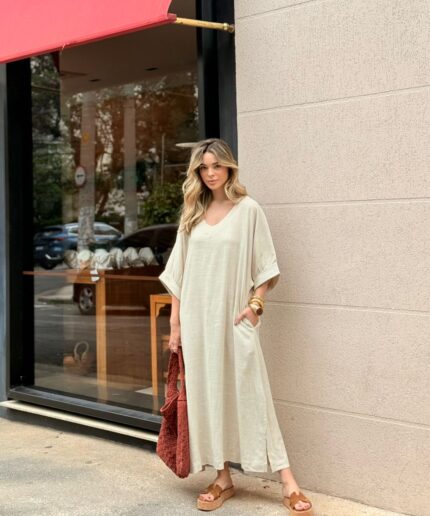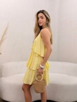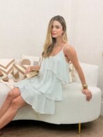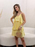 O vestido regata com babado é a peça perfeita para quem busca leveza, movimento e elegância em uma única proposta. Confeccionado em tecido leve e fluido, ele cria um caimento suave que acompanha o corpo com naturalidade, proporcionando conforto e sensação de liberdade nos movimentos. Os babados aplicados em camadas dão volume na medida certa, trazendo um visual romântico e sofisticado, enquanto a modelagem soltinha mantém um toque moderno e atemporal.