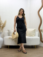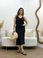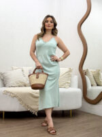 O Vestido com Fenda Enviesado é a escolha perfeita para quem busca elegância com leveza e conforto. Com design minimalista e corte enviesado, o modelo valoriza a silhueta de forma natural, proporcionando um caimento fluido e sofisticado. A fenda lateral adiciona um toque moderno e sutilmente sensual, tornando o visual mais interessante e feminino. Feito em tecido leve e macio, garante frescor e liberdade de movimento, ideal para compor produções tanto casuais quanto mais elaboradas.