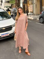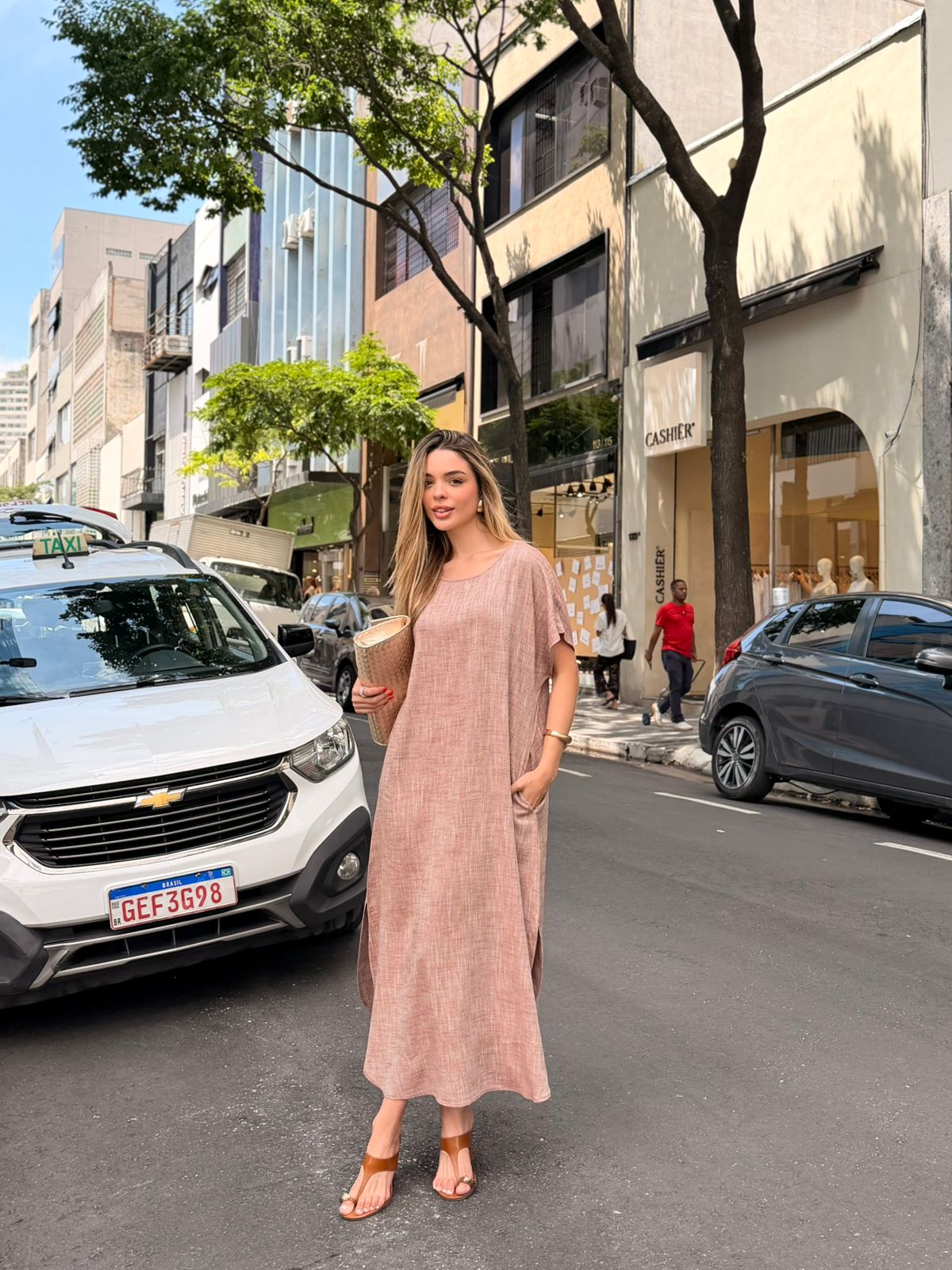 O vestido midi em linho é a escolha perfeita para quem valoriza sofisticação aliada ao conforto. Confeccionado em linho de alta qualidade, apresenta modelagem ampla que garante leveza, fluidez e um caimento impecável, favorecendo diferentes tipos de corpo. A fenda lateral acrescenta modernidade e movimento ao visual, além de proporcionar frescor nos dias mais quentes. Com acabamento natural e elegante, o vestido transmite uma sensação de liberdade e confiança, ideal para composições que vão do casual chic ao sofisticado.