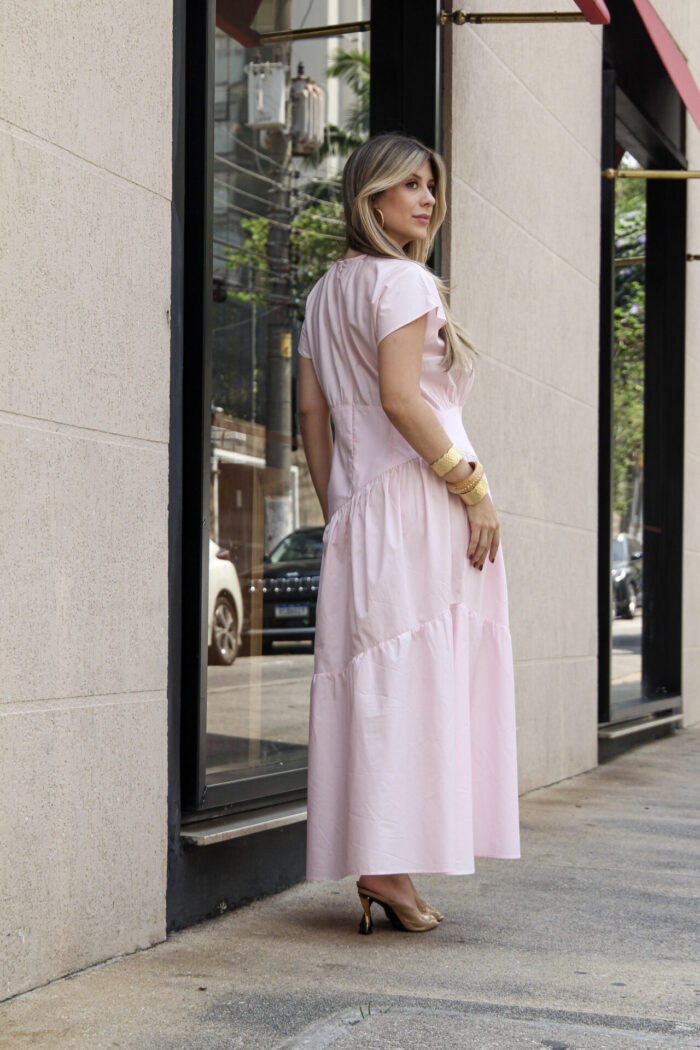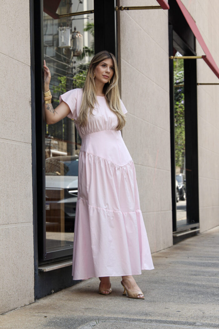 O vestido midi em tricoline é uma peça elegante e versátil, ideal para composições leves e sofisticadas. Feito em tecido 100% algodão, tem toque fresco, estrutura delicada e caimento fluido que valoriza a silhueta com naturalidade. O modelo apresenta recortes que definem a cintura e criam movimento na saia, conferindo um visual feminino e equilibrado.